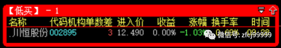 6月29日9:26分冲击涨停预警的是002895川恒股份(低买),开盘价12.49元,当日最低价12.25元,收盘价12.26元,暂取5个交易日最高点计算,最高价格是12.90元,整体盈利达到+3.28%。(该股最佳买入位置是13日成本均线,价格大概是12.34元)