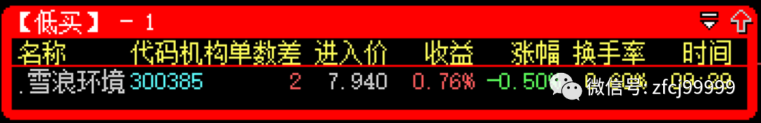 7月21日9:26分冲击涨停预警的是300385雪浪环境(低买),开盘价7.94元,当日最低价7.94元,收盘价8.08元,暂取5个交易日最高点计算,最高价格是7.86元,整体亏损达到-1.01%。