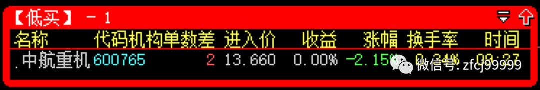 7月22日9:26分冲击涨停预警的是600765中航重机(低买),开盘价13.66元,当日最低价13.47元,收盘价13.70元,暂取5个交易日最高点计算,最高价格是14.80元,整体盈利达到+8.35%。(该股最佳买入位置是13日成本均线,价格大概是13.48元)
