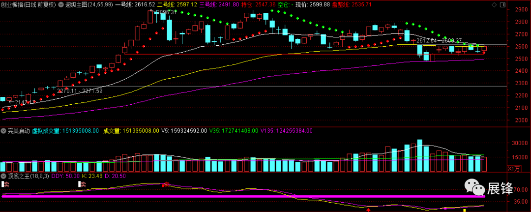 昨天说过创业板的多空分水岭在2607.65,今天最高冲到2608.42,日线上实现了由空翻多,但这里不得不说,明天多空转换点在2062.37,如果被跌破哪怕0.01点,那么今天这个翻多也是没有意义的,但从量能配合以及指标情况看,创业板明显好于主板,所以近段时间,可以选择创业板个股进行操作,由于交易制度的偏向,创业板个股的机会会更多,仔细甄别即可!