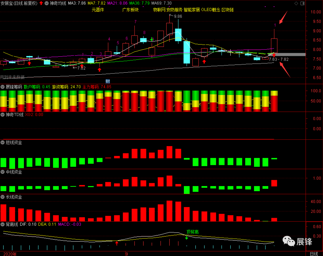 今天神奇的TD线指标,盘中一度预警了安居宝,虽然最后收盘信号消失,但主图k线下有红色买入信号,上有上涨周期计数1,我就暂且留一个作业,有兴趣的股友,可以谈谈对这只个股的看法,在这里形成一个讨论的氛围,不要管说对还是说错,我们只是讨论走向的问题,期待你的答案!