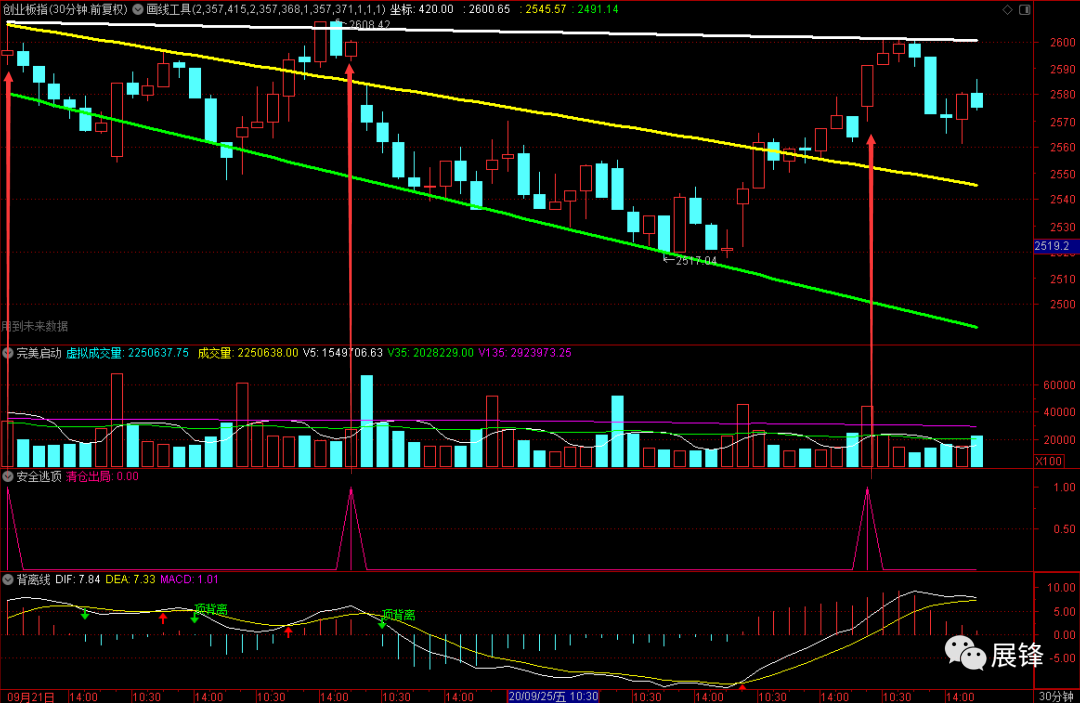 有人问我是怎么看出3208会破的?其实特别简单,创业板指今天30分钟10:00有安全逃顶信号,第二和第三根k线都是高抛的良机,午间视频解盘我也讲了,可能有人没注意听,说实话,我更希望今天是先破3208,然后再拉起,没想到和我想法走得有点相反,午后破3208打3202,让一根原本可以出现的中、大阳线,就这样化为了乌有!指数触及3202之后,出现了一波快速的上扬,很多人纳闷儿,为什么没有坚持住呢?这里延伸说一句话:只你许州官放火,不许我百姓点灯吗?与所谓的国家队相比,这里的百姓也包括机构,下压3208就是不创新低,有人说国家队拿捏的非常到位,机构一起来,就让你破一下,你不是想翻红吗?我就不让你翻红,看看今天晚上谁挨骂?我这么讲,你理解了吗?如果没有理解,就仔细的多看几遍,没有坏处的,好容易碰到个双节,你还搞了个绿盘报收,不说给国庆献礼吧,至少的“繁荣”还是要修饰一下吧,结果“百姓”胜利了,希望那些傻缺,收盘后被痛骂一顿,这才让我们更加的解气,那么节后的市场,会怎么运行呢?