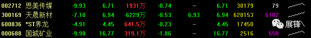 我的国成矿业今天压出了第3个跌停板,你看一下上面的压单,就知道是配资盘干的,再结合思美传媒、天晟新材、*ST界龙的情况,你就该知道是怎么回事儿了,我这个人不喜欢遮丑,既然摊上了国城矿业这样的事儿,我就自认倒霉,具体是因为什么不想讲,以后你们都会知道真相,反正现在也出不去,那就看着呗!