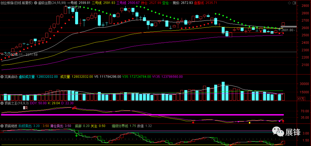 创业板今天走的不错,跳空高开后基本挺住了,虽然成交量不是太理想,但个股的活跃度还是不错的,至少60分钟收上了二号线,从日线级别又有所期待。唯一不太理想的是30分钟,又出现了高抛信号后顶底之王在高位,如果K和D线高位死叉的话,短期的回调可能很难避免,如能维持在高位运行,大家也要多加小心,毕竟现在都不牢靠,小心无大错!
