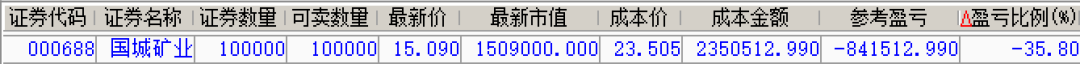 国城矿业迎来第4个跌停板,我亏得最少的一个账户已经亏了-35.80%,有人建议我不要把账户展示出来,其实这又有什么呢?亏了就是亏的,谁能保证自己这一辈子不会踩一脚狗屎?思美传媒、天晟新材跌停都打开了,说明融资已经在这两只股上杀出去了,国城矿业属于获利较丰厚,啥时候能打开?我也不知道,只能利用其它资金,做账户平衡处理!