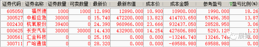 广哈通信今天继续涨停,我做了逢高获利了结处理;汇金科技在上涨的时候,为了控制仓位,我也做了获利了结。今天主要买了两只个股,一是起爆牛股预警的中船应急,二是上一交易日看好的金牛回头杭氧股份。前者收盘获利+13.87%,后者获利+3.06%的,总体还说得过去!长安汽车继续持股,上涨小周期第2天,暂时应该没完,继续持有看看再说!