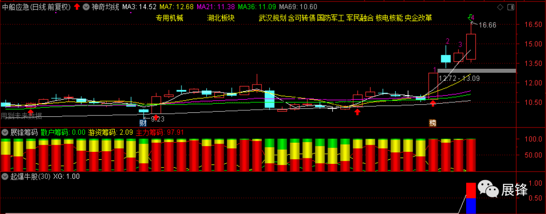 今天起爆牛股有8只,按照交易规则,有两只可以直接剔除不关注,买入中船应急,主要是因为它上涨第4天,我的买入价是13.82元,当时是该股正在回调中,这时买入价格是非常好的,只要不出太大的意外,赚钱都是没有问题的,只是赚多赚少而已。我还看好那只科字开头的股票,不知道明天它是不是能有所表现?