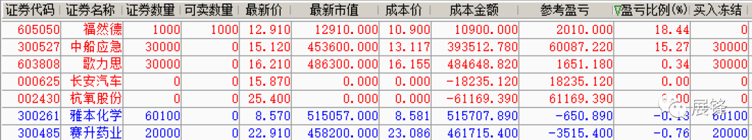 前市高抛了杭氧股份,获利幅度蛮不错;长安汽车涨停板,不得不说跑得早了一步;下午15.88元挂单卖出了3万股中船应急,尾盘15.15元再度接回了3万股,毕竟收盘在3日均线之上,看看明天还有没有机会。午后买入歌力思3万股、雅本本化学6万余股、赛升药业2万股,该股短期是起爆牛股预警,看看明天能否有所表现,这个非常重要!