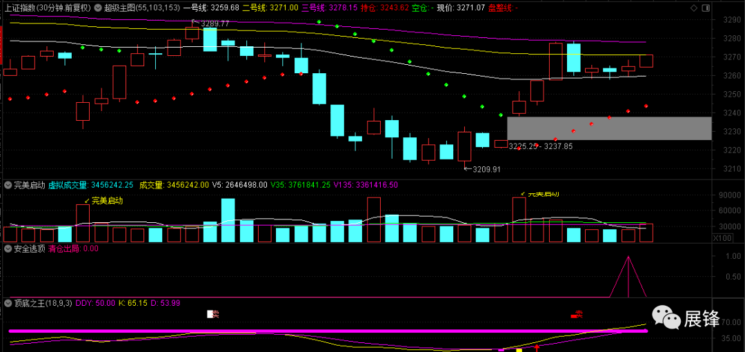 前面我讲过,上证指数、上证50指、创业板指、中小板指,包括中证500,任何一个指数30或60分钟出现安全逃顶信号,都要倍加珍视,辅助判断的顶级之王如果随后出现死叉,那么短线市场将会快速走坏。截至今天收盘,上证指数、创业板指数30分钟安全逃顶信号出现,注意观察顶底之王指标,一旦死叉的话,短线要立即退出!