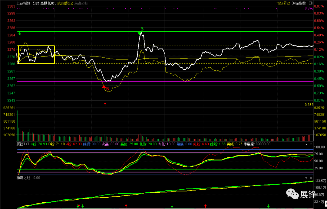 今天A股走的挺纠结,从沪指的分时图,就可以看得一清二楚,盘中的高低点捕捉已经非常明显,从神奇之线指标来看,多空双方胶着在一起,虽然最终是红盘报收,但只能算是个区间震荡,什么时间呢?底下的我不用说,上面的就是5月线,问题倒是没有什么大问题,但就这样也是很磨人的,未来依旧会向上,但过程会非常复杂!
