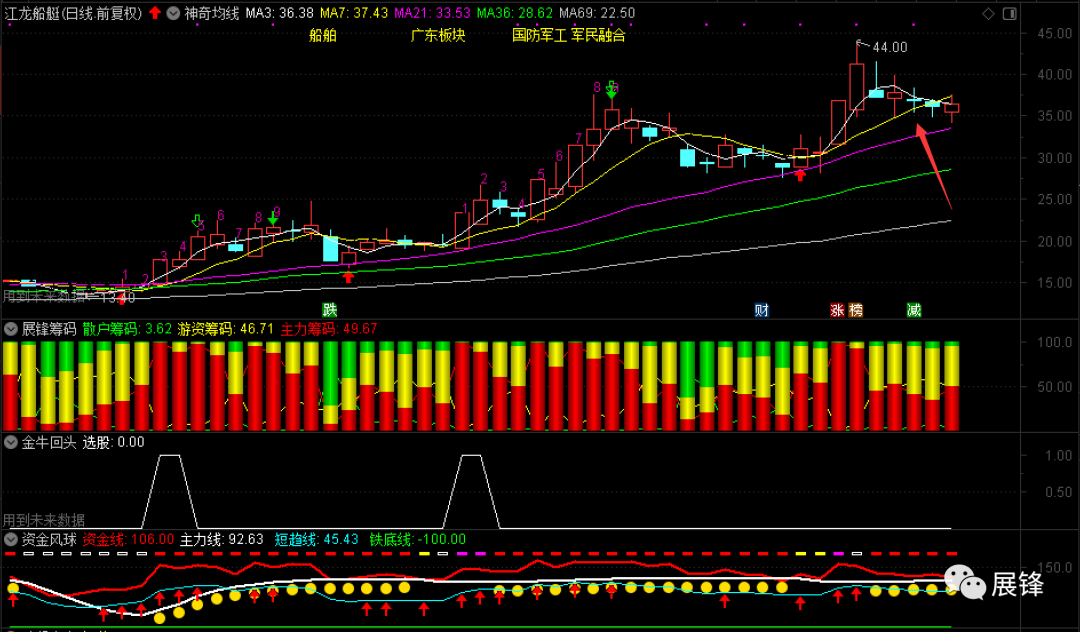 周一在35.82元短线出击的江龙船艇,完全是个人经验买卖,昨天下跌,有些人觉得有点受不了了,而我个人的想法是,反抽7日均线就先出局,今天下午该股快速拉起来,和中船应急、新余国科一起,最高冲到37.70元,我是37.58元卖出的,虽然看上去获利并不是太多,但据我个人角度讲,只要能够赚取一定的利润,在当下行情中就已经非常好了!