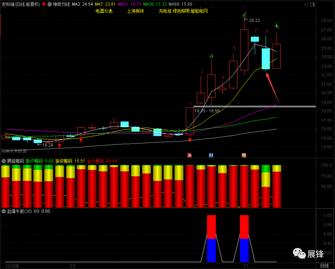 昨晚讲课的时候说到了安科瑞,以前在起爆牛股进阶之路讲课中,我说到过这种变化,当一段升势维持结束之后,可以在首次打7日均线的时候进行买入,昨天的买入价23.03元,今天股价最高冲到26.68元,也就是说,只要你敢于按要求昨天买入的话,到今天最高点附近,妥妥的+15%以上的收益,明天怎么样不管?短线就是不恋战,该撤就撤了,股票多的是!