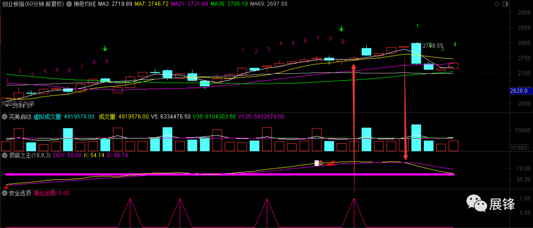 昨天临近收盘的时候,我开始逐步减仓,很多人不理解为什么要减仓?大盘势头这么好,因为60分钟顶底之王死叉了,讲课和直播的时候一再说,不管是哪个指数30或60分钟安全逃顶后顶底之王出现死叉,对短线市场的影响都非常大,所以以后此方面是最值得珍视的,做超短线和短线的朋友,切不可掉以轻心,最近往上涨不能放量,而往下跌的话快着呢!