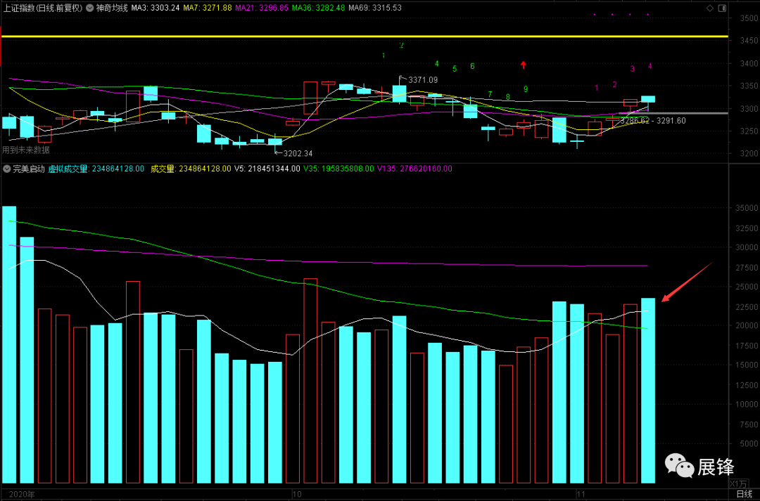 今天沪指有一点点放量,有人说这是放量下跌,午间解盘的时候,我说未必不是好事,不管阴量还是阳量,只有连续超过5日均量线,5日均量线才能继续往上走,这是一个量能方面的要求,某一天或某几天不能符合的话,5日均量一旦掉头下来,那就会非常的不舒服,甚至又要重新规划,所以你记住,量起才能大幅跟进积极做多,量缩只能是窄幅震荡,这几乎是定律!