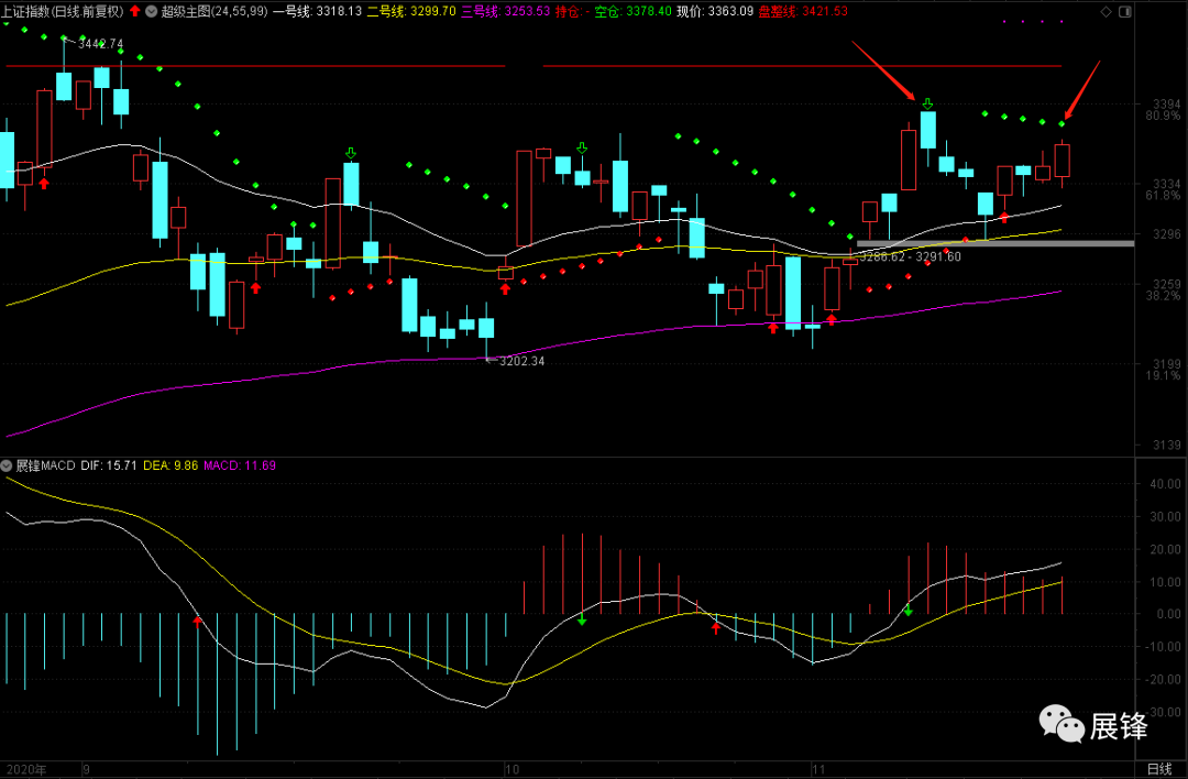 日线大盘明天多空转换点在3378.40,这里只要突破0.01点,日线级别就会由空翻多,这是第一个前提;3387.62是11月10日形成的高点,这里如果也能突破0.01点的话,就会有一个急速上涨浪出现,毕竟明天是沪指重要的变盘开始,这可能是今年最后一个变盘点,你记住,3387.62突破0.01点,就基本可以确认这个升浪,不突破的话,那就继续晃荡!