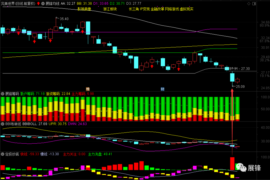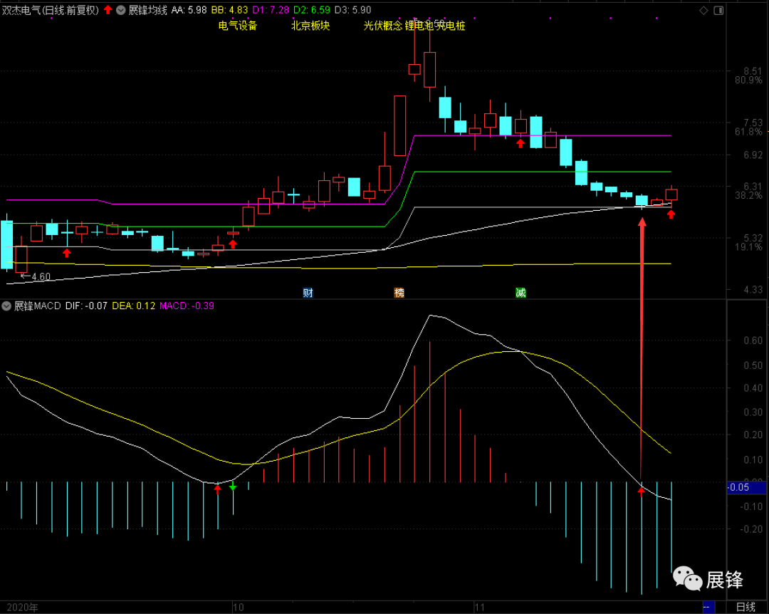 300444双杰电气是11月17日我送出的红包股,就算你在AA线5.93元买入的,今天到6.34元,获利已经接近7个点,虽然日线级别还没有卖出提示,但在现在的这种行情,按照规定计划止盈,不抱贪枉之心,就不会有什么大的问题,如果短期该股再打回5.90元,其实又可以再度买入,要么等DIF上穿零轴卖出,要么等冲击6.59元压力位卖出,反正都会吃亏!昨天在一直播做讲课的时候,我重点讲了定投抄底的应用,有时间的朋友可以自己去看看回看,接下来几天,我还会不断强化讲该选股系统的使用,有兴趣的就多听听!昨天说了,计划调整获利点为+4%,也就是买入价格乘1.04,比如你买入的价格是26元,卖出价格就是26×1.04=27.04元,缩小一个百分点的获利额度,会使成功率提高1.6个百分点!