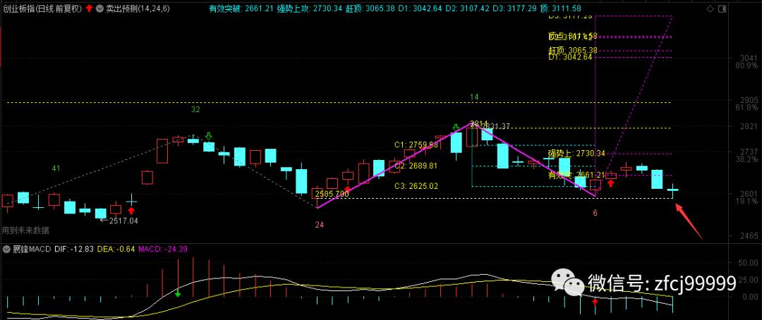 昨天我讲过,创业板在2585有一道支撑,今天创业板指最低下探到这个位置,然后有所企稳。就短线来说,创业板指跌到这个位置附近就不宜再杀跌了,它有一个自然的回升动能,你会发现在一个位置即将破位的时候,总会被一只手拉住,这只手是谁?我不说你也心知肚明。所以也没什么好担心,短期市场风格将会进行有效的切换!
