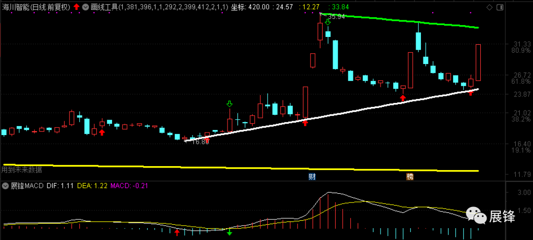 今天全市率先止赢了海川智能,止盈价格是29.92元,虽然自己预计是在涨停板低一分钱卖出,但最终还是选择了先出局观望,毕竟在这只个股上已经薅过三次羊毛,拿到了应该拿着利润,也减掉了该减的仓位。不管短期该股能不能上冲到绿色压力线附近,它都暂时的淡出了我的视野!