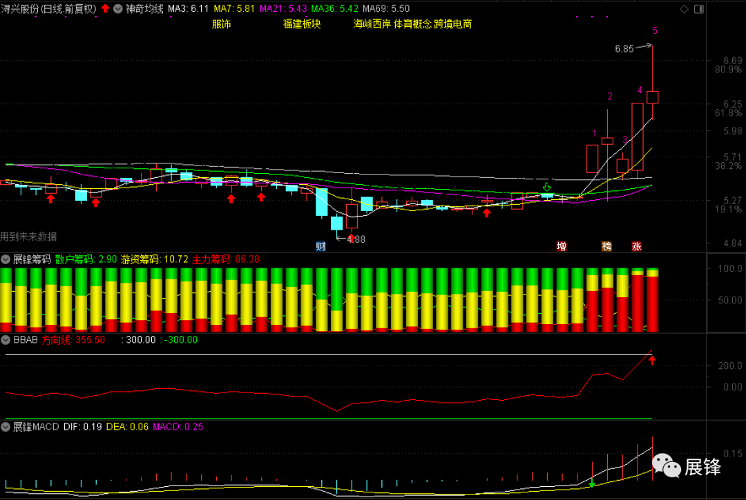 今天强势选股预警了寻兴股份,如果以30天6.11元为介入点的话,收盘还是有些盈余的,我虽然今天实盘没有参与该股,但我愿意把它拿出来跟大家一起分享,看看这种做强势股的方法,是否是真实有效的?经过后面的磨砺之后,当规则制定起来,我想还是要有一个细化的过程的,没有规矩不成方圆,炒股更是如此!