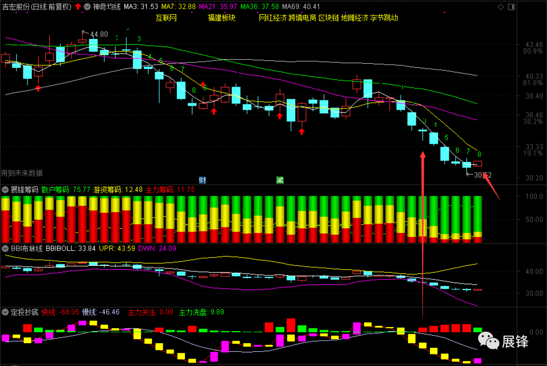 昨天一直播讲课的时候,有股友问到了吉宏股份。说自己定投抄底到今天还没有获利,这只股的第1个买点,我在上图中标注了。按买入原则的话,这个股票一共买入了4笔,价格分别是:34.80、33.54、31.84、31.18元,如此一来,平均成本就是32.84元,乘以1.04=34.15元。今天收盘在31.85元,这是我直播间喊单一起介入的结果!可能有人会有疑问,为什么要买它呢?我的理解很简单,按原则加仓4笔的股友平均成本在32.84元,我们今天的买入价格不过在31.85元,而且仅仅是第1笔买入,就比前面的低将近一元,这笔生意划算不划算?31.85乘以1.04=33.12元,也就是说,33.12元我们就赚4个点出局了,而先期买的要在34.15元才能够赚到4个点,你觉得谁的胜率更大呢?