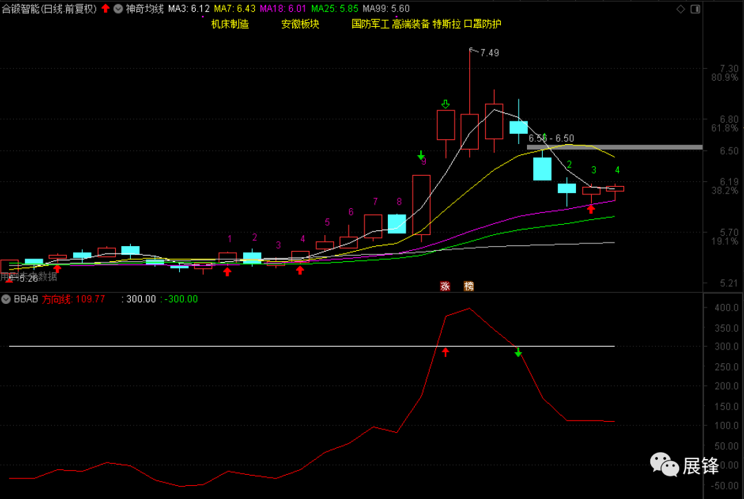 今天我的软件儿又预警出了一只合锻智能,11月27日出现超级强势红箭头提示,然后展开逐级回落,今天最低触及18日均线6.01元。虽然是小的下跌序列调整第4天,但处理主力筹码仍维持在55.69,说明第一波拉升的主力并全身而退,或者说根本就没想全部退出,如果能够稳于18日线之上的话,那么这个股票随时有可能展开快速的二波拉升,你觉得有这个可能吗?
