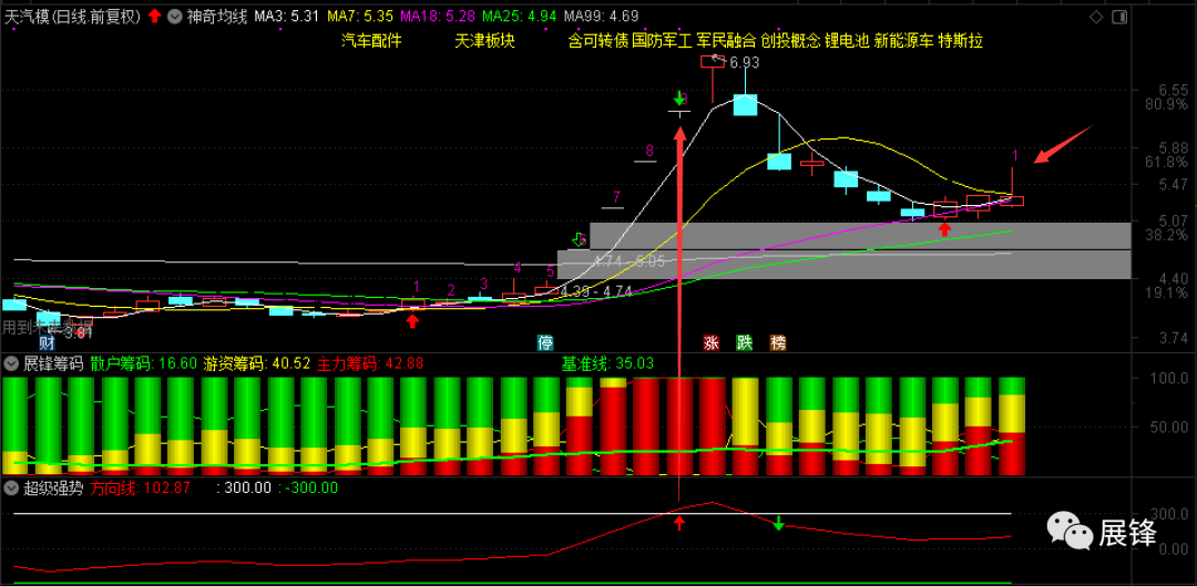今年前市高抛了5.12元买入的天气模,抛出价位是5.65元,短线获利+10.35%。这也是前今天我介绍的红包股,是超级强势回踩的一种买入模式,目前看来收益是比较好的,但也有需要特别注意的地方。此种买入方法,有两种操作模式:一是1+2买入法。例如18日均线买入5000股,25日线加入10000股;二是等待25日均线买入机会。