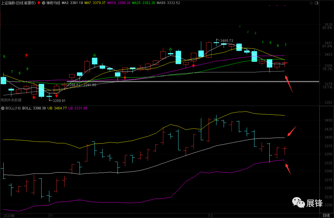 创业板今天走的很漂亮,日线级别完成了多空转换。沪指今天走的比较糟糕,如果不是创业板的一再拉抬,这条赖皮狗根本就没有想起来的意思。原本我觉得借助创业板的拉抬,至少反抽一下25或18日均线,收盘才知道是我自己的问题,太TM高估这“国家队”的智商了。接下来,注意12月10日高点的压力3384.89,支撑位在99日均线附近!