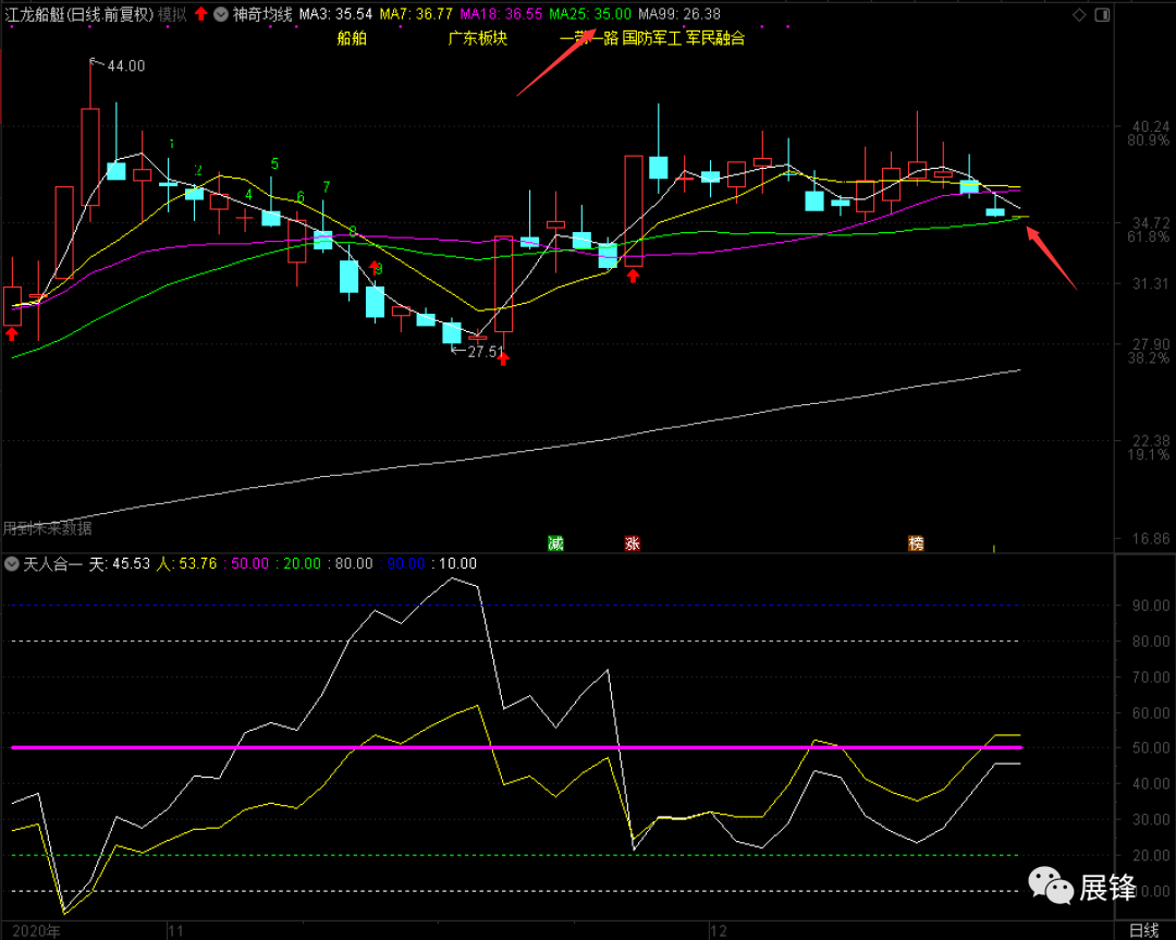 今天在35.01元对江龙船艇完成了加仓,可能有人会很疑惑,江龙船艇的25日线不是在34.77元吗?是的,你看到的没有错!我只是用沙盘推演了明天25线的位置而已。我是这么计划的,如果该股明天翻起来去冲18日均线,翻不过去的话我就先退一步;如果收盘跌破25日均线的话,那我反抽25个均线的时候,先出来看看。反正是做了两手准备的,也必须要考虑到!