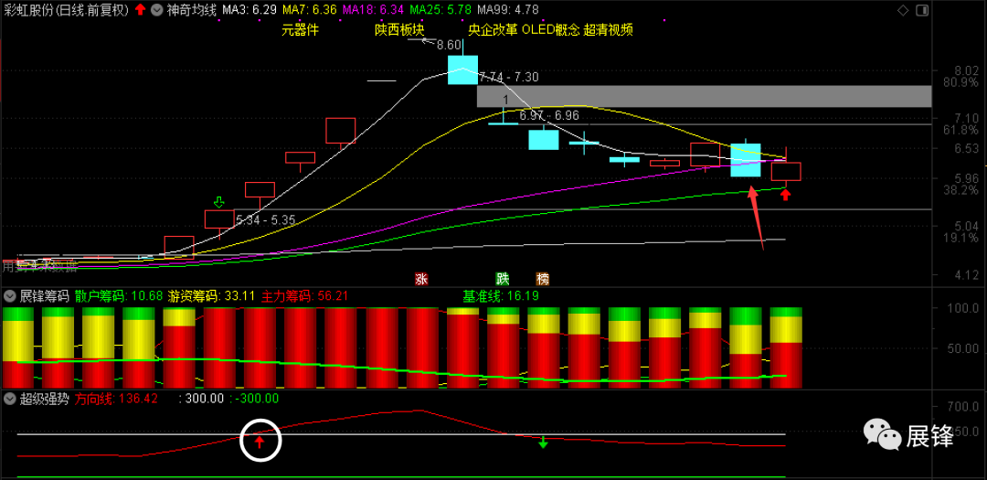 昨天在5.25元18日线买入了彩虹股份,当时的计划非常简单,18日线买入一成仓位,25日线附近加入两成仓位,结果今天全市就0.02元之差,最终没有补到该补的仓位。好在它及时开始反思,我在分享的时候告诉大家挂在5.57元,这里是比涨停板低一分钱的地方,我不管这里有没有第二波出现,最后6个点的收益是稳稳拿到的,明天至于会如何?和我无关!