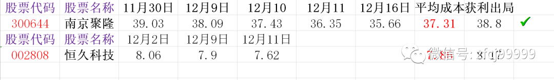 定投抄底两路进军的数据统计,300644南京聚隆今天在38.80元顺利完成获利了结,该股最高冲到39.42元附近,这和我们没有什么关系,我们只是硬性的拿到+4%的收益即可。002808恒久科技短线表现较弱,目前一路军处于空仓状态,二路军只有三成仓位,明天择机一路军再找一只个股入场,今晚翻翻看看有没有合适的品种!
