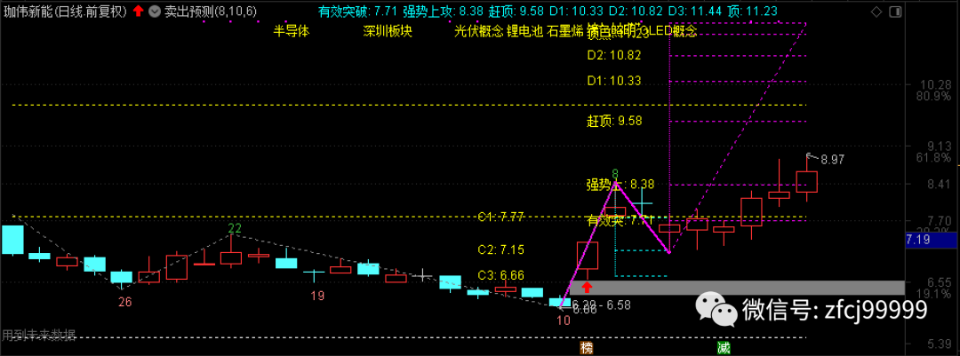 持仓的珈伟新能今天最高冲8.97元,我并没有卖出的意愿,除了该股今天有一个金牛回头信号之外,该股日线级别小周期上涨第3天,如果正常状态走下去的话,D1的10.33元附近是完全可以看到,这是从纯技术角度出发所看到的东西。只要基本面没有太大的变化,短期该股后面或许有20CM的机会!早盘时,我还买了一只金牛回头信号的种业股,入场位置虽然不算太恰当,但收盘的情况还是略有盈利的。本来这只个股是起爆牛股信号,结果盘中信号消失,收盘只剩下金牛回头的信号。看看接下来,该股能否有好的表现,这才是最为重要的,毕竟种业股也是后期的一个大题材,短期的走向应该没有太大的问题!今天暂时先写到这里,吃了药以后感觉舒服了不少,好多股友都担心后期市场的走势,那咱们就20点整一直播见吧!