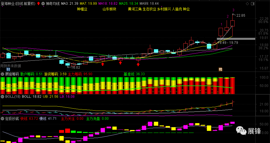 21.08元买入的登海种业,今天最高冲到了22.85元,虽然才是上涨的第3天,但看上去似乎有那么一点点儿风险,所以下午在快速上冲的时候,我们做了逢高获利了结处理。当然,这里也有对大盘有些顾忌的成分,为什么这么说呢?没有冲上站稳25日线,你宁可相信这是回抽确认跌破的有效性,大不了有效收复后,回踩时再买回!