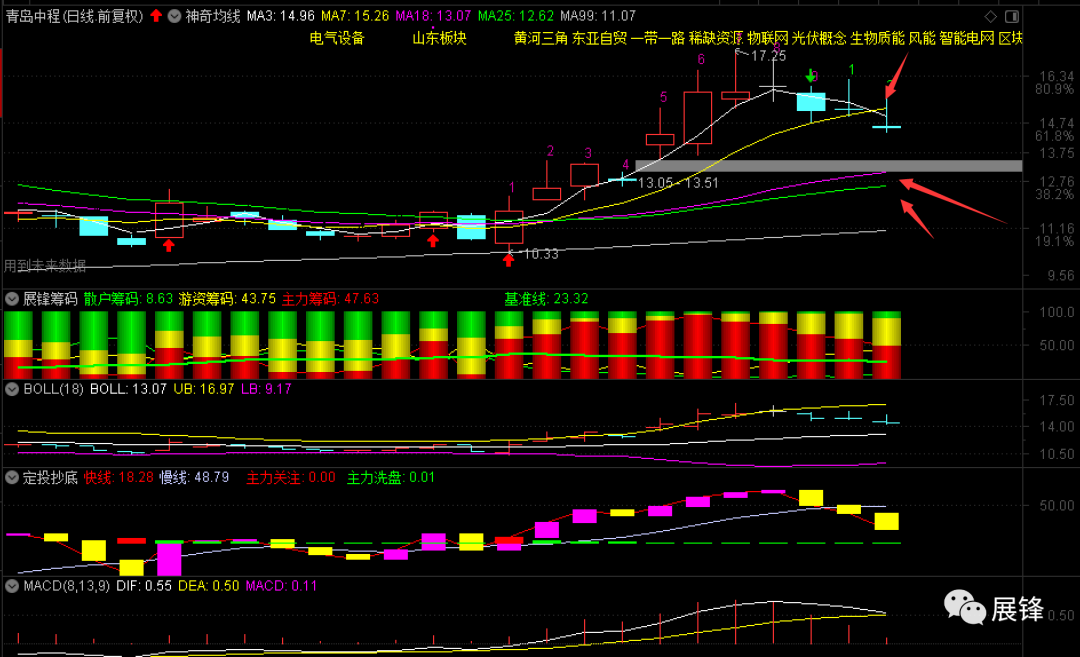 盘后有股友向我咨询青岛中程,说他在7日线15.26元买入,接下来该怎么办?其实这只个股在12月17和18日有起爆牛股信号,连续两天踩回7日线都有利润,今天表现的相对弱了一些,应对这样的操作,最好的策略就是等18或25日均线加入两成仓位,这样你可以不管第一仓买的有多高,都能够将持仓的成本大幅降低,这只个股有涨停基因,说不定啥时候就发飙了!我得去看看我的旺财了,今天就不多写了,晚上在一直播有讲课,今天着重讲讲如何补仓的问题,或者说何时补仓的问题。有兴趣的股友,到时候来听一听!每天写文章不容易,希望能转发的帮忙转发点赞一下,非常感谢!