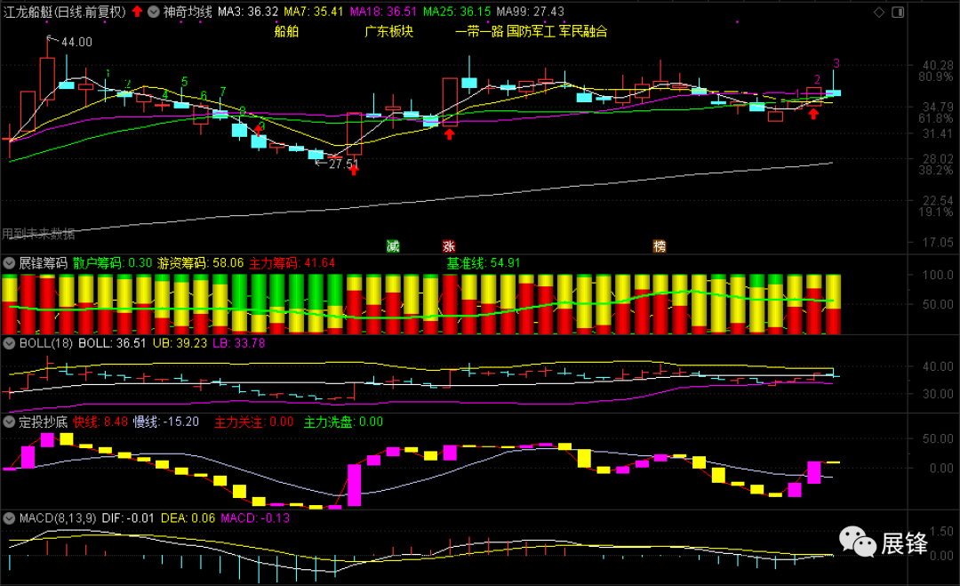 36.63元第一仓拿的江龙船艇,今天在39.39元再次做了顺利止盈出局,真的已经记不清是第几次在该股上薅羊毛,反正就是没有错过一次。除了技术方面的原因之外,或许运气的成分更多吧。今天尾盘该股再次快速回落,收盘正好打在25日均线之上,明天还会有好的机会吗?欢迎文后留言探讨!