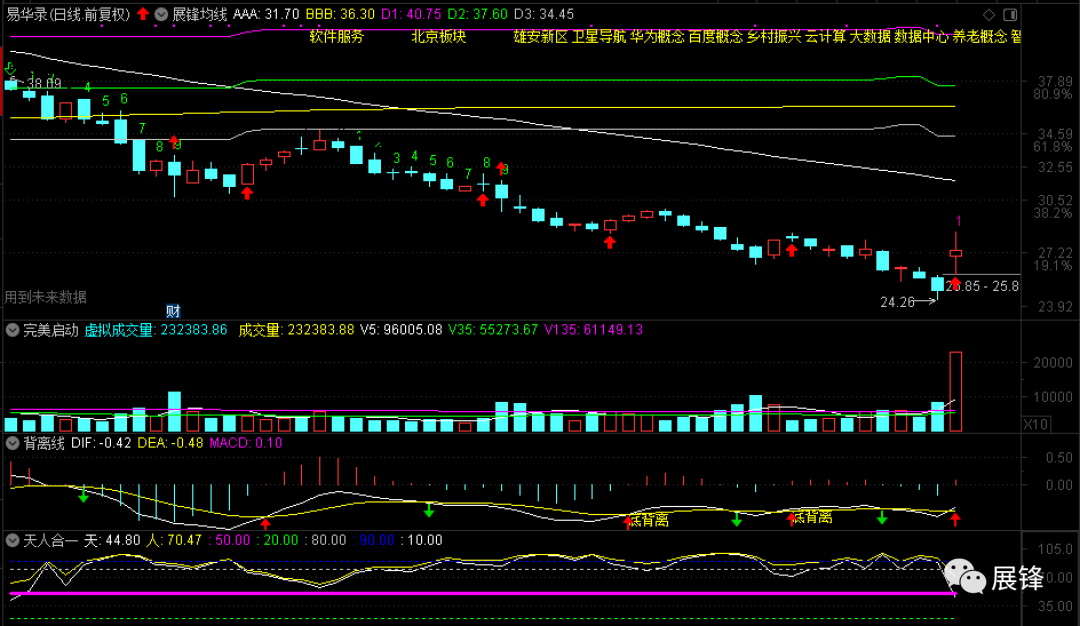 今天我自选股中涨得最好的就是易华录,12月27日晚间发布业绩预告,预计2020年度净利6.53亿元-7.10亿元,同比增长70%-85%。按最高7.10亿元算的话,每股收益或高达1.09元以上,今天真实换手超过了6.13%,如果成交量可以持续继续放出的话,那么这只个股短期见底的可能性极大,主力今日净买入2202万,看后续之回升力度,应该是年线36.30元附近!