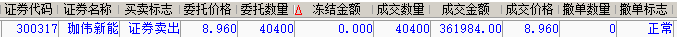 午后珈伟新能快手拉起,第1波上拉直到8.96元,出现第2个高抛信号后,我将剩余仓位40400股,挂在了8.96元这个位置,结果在第2次上冲时顺利快速成交。这只个股周线的压力在9.39元附近,日线的在布林上轨附近,短时应该还有机会继续上冲,这就是我为什么喜欢300股票的原因,他有时候会把你套百分之20%、30%甚至40%,可一旦灿烂起来,就会很快盈利!