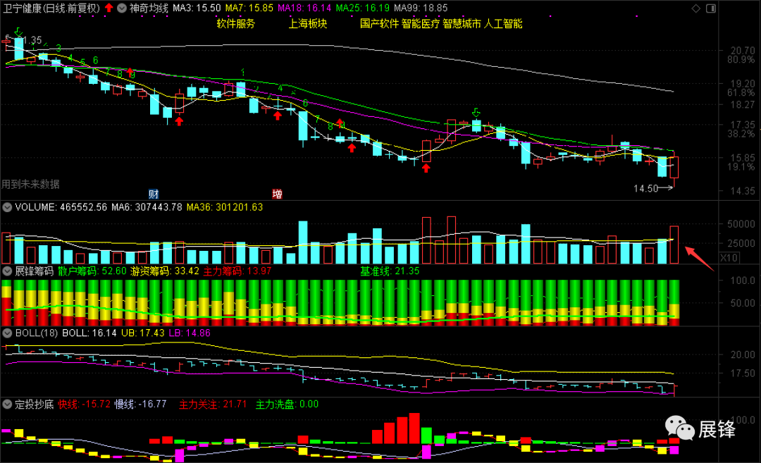卫宁健康今天能涨起来,让我多多少少感到有些意外。虽然最终也没有收上25日线16.19元,但这气势看上去还是有些汹汹的。收盘后,6日均量线上穿了36日均量线,主力资金净流入+3284万。接下来,该股如果能够突破布林中轨的话,股价短期或许会有一个新的变化,短期除非有特别力量的突进,股价能够出现连续的一飞冲天,否则过程恐怕还有点儿漫长。