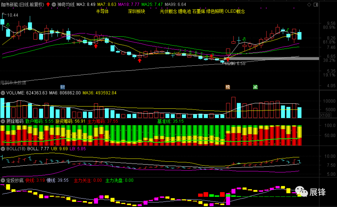 昨天尾盘高抛止盈的珈伟新能,今天收跌了-10.49%。由于该股是近期的强势股之一,短期出现如此之大幅回调,和强势股整体回调不关系。就日线级别来说,18日和25日均线附近,能不能再度打伏击,有待进一步商榷和研究,毕竟此次拉升主力筹码未能全身而退,跑光的反而是散户的持仓。所以,估计后面还能够折腾折腾!