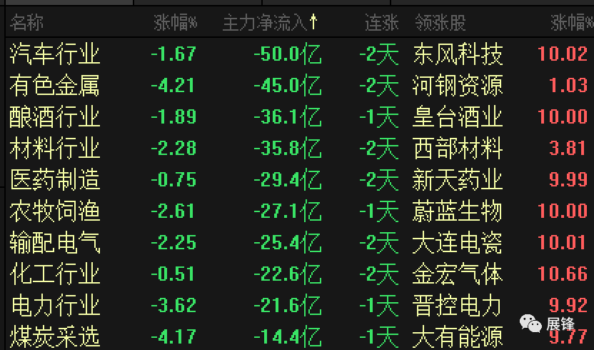 用资金净流出指标,排一下今天的行业板块,我们会很清楚的看到,汽车、有色、酿酒、农业、电力、煤炭板块,这些近期活跃的行业板块,都出现了资金大幅的净流出,似乎那种抱团取暖的情形已经不在,如果真是如此,那的确甚好,就怕这死灰还有复燃的时候,从而影响了中、小盘科技股的整体回升,真的没那么简单,切换不是一天两天的事儿!