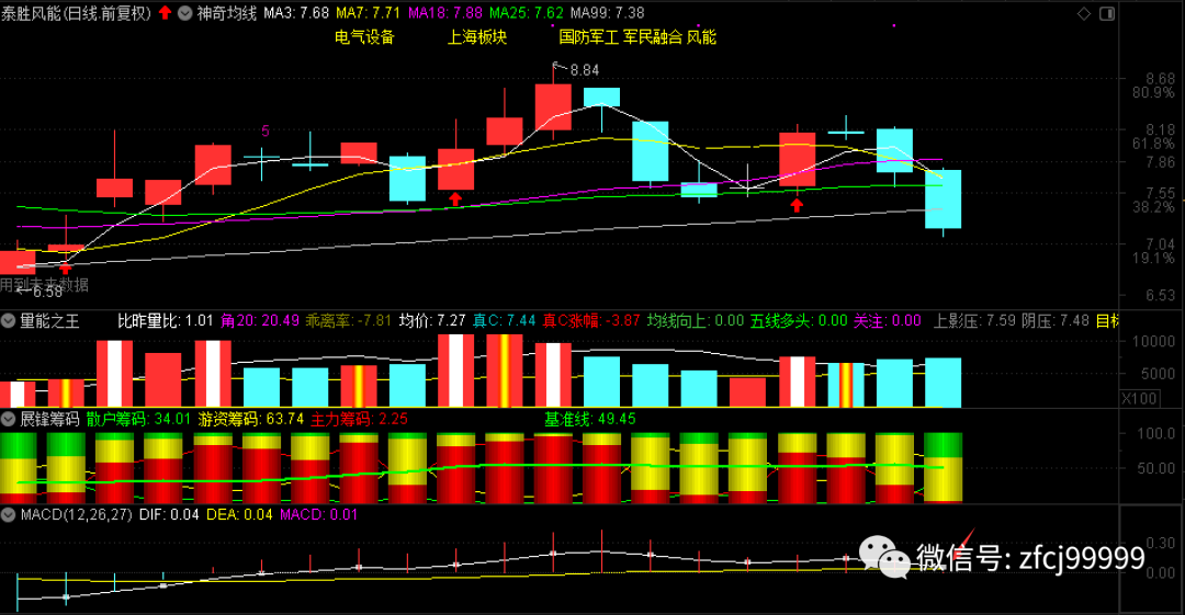 有朋友咨询泰胜风能该如何操作?这只个股短期开始有些走弱,今天跌穿了25和99日均线,虽然基本面上没有太大的问题,算不上优良也不太坏,但既然已经开始走弱,那就注意25日均线在后期的得失,如果反抽无法站上25日均线的话,就要再反抽到25日均线附近时,进行一个逢高减仓处理,我们不保证每一只个股都是对的,但必须要做好每一只个股的相应策略!今天暂时就先写到这里,晚上一直播讲课的时候,我会多说一些!