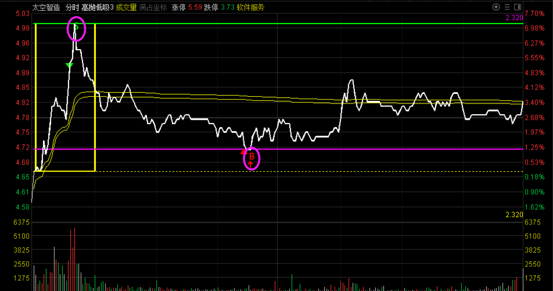 今天我还做了一次太空智造的反T,当然只是用了1/3的仓。比如我有6万股太空智造,今天早盘在快速向上拉升的时候。我在5元卖掉了2万股,还剩底仓4万股。股价回到4.71元时,做了2万股的低吸买回,在4.83元时做了又一次盘中T高抛。虽然看上去两次利润不太起眼儿,但你仔细算一算的话,你会发现还是很有味道的,能够达到降低持仓成本的目的,反T也挺好!可能有人会说,你这样卖完之后。原来的6万股持仓,现在变成了4万股。如果下周该股万一出现大涨的话,岂不是吃亏了?其实,事情要往两面看。股市操作不要总想着万一,万一就是1/10000,9999/10000不涨,却被以偏概全的话,这是非常不科学的。当然如果就这样T飞了1/3的仓位,认了也就是了,有什么大不了的呢?