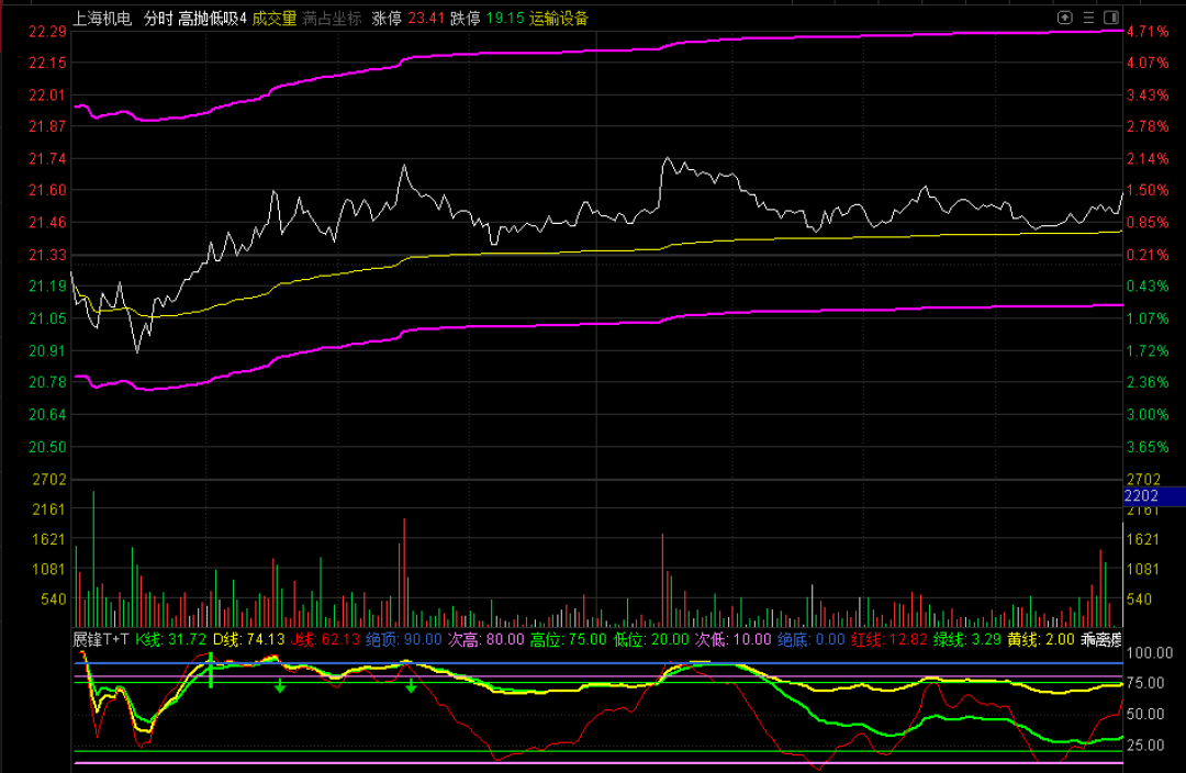 昨天盘中21.23元加仓做T的上海机电,由于尾盘回落,当日没有T出去。按照设计要求,今天在21.48元挂单T出去,虽然股价最高冲到21.75元,但你是遵循什么原则做的?就必须遵循什么原则出局,看着这种T+0,每次只有+2.25%的收益,但如果盯着一只股票来回的做,件件都可以将一只个股T成负成本!短期该股看态势有希望再上冲,不知道预判的对不对?