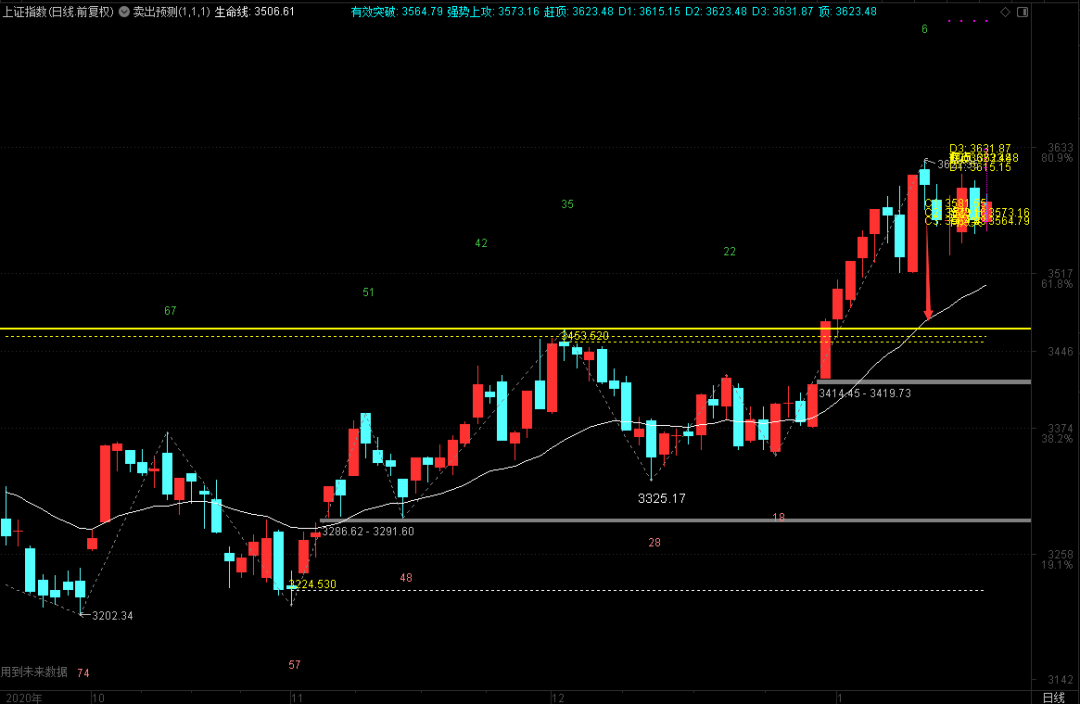 昨天讲课的时候,聊到了大盘的拐点问题。我特意画了一根线加以说明,告诉大家:当均线和N字高点重合时,往往会产生或上或下的拐点。上证指数的拐点是1月13号出现的,创业板的拐点是1月8号出现的。虽然今天创业板日线级别完成了再次的由空翻多,但说老实话,我并不看好这个反弹,因为创业板的大涨都是尤其权重成分股拉抬所致。