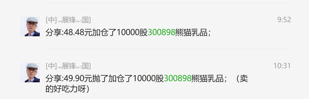 今天在48.48元加仓了1万股300898熊猫乳品,这个位置是高抛低吸3盘中低吸的位置,有朋友说这种振幅比较大的个股,做起盘中T+0来特别的爽。其实,我也是这样认为的,不管个股如何风云变幻,只要抓住盘中做T的机会,你就能够把持仓的成本进一步降低。当然,这需要有公式的辅助和一定的使用技巧,我在讲课的时候总会说到!