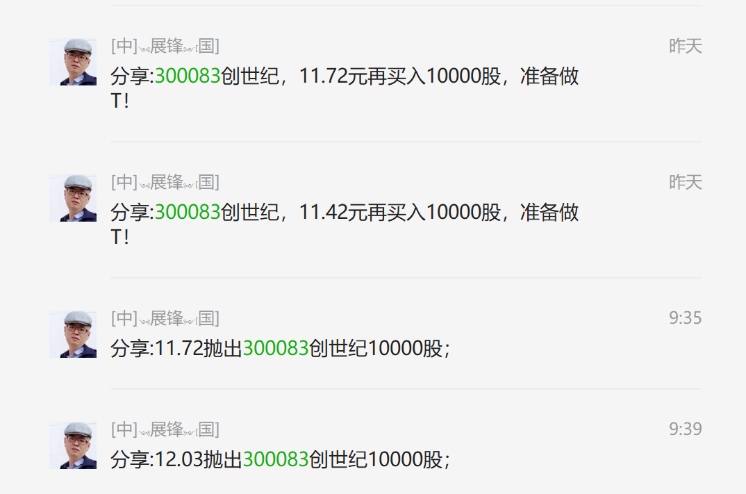 昨天在11.72和11.42元分别加仓了10000股300083创世纪,今天上午开盘后,11.72和12.03元将加仓部分做T抛出,底仓20000股仍旧持有不动。下午该股又回到了11.57元低吸位,由于距离14:30比较近,所以自动放弃了,这一次的盘中做T机会,对一只比较不错的个股而言,盘中反复进行T+0操作,对成本的降低是卓有成效的。