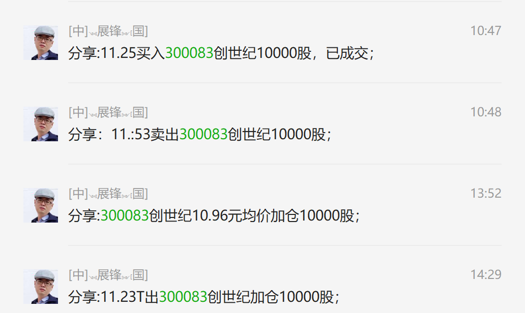 创世纪今天在11.25元买入了1万股准备做T,结果11.53元挂出的单子未有机会成交。下午在10.96元又加了1万股,在11.23元做T卖出了。如此一来,我的仓位就变成了3万股,不过也没什么关系,我的成本比现在的股价还要低很多很多,有什么大不了的呢?只要学会了做盘中的T+0,你管它主力姓什么?一样是照T不误!