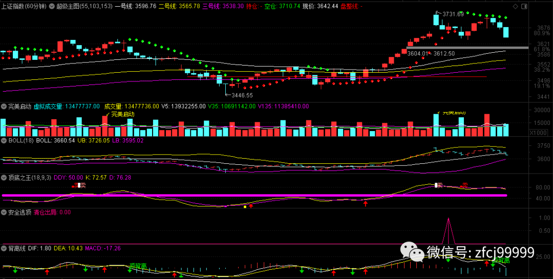 今天大盘是个放量下跌,第二小时的时候我就很肯定了,但八股走势还是不错的,所以中午解盘的时候,我让大家继续忽略指数,以中小盘个股为主。其实收盘的情况大家也看到了,60分钟二号线走到3565.78,如果这里短线能够撑住的话,还是可以折腾折腾的,否则就不要抱任何的幻想。也许后面还会再起一浪,在调整充分后再往上来会更好。