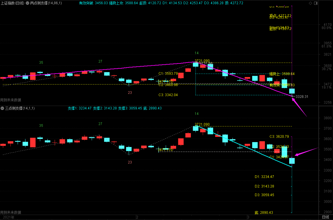 从大盘的日线结构图来看,3342.04是第3道支撑,这是一个远端的支点,虽然最后收于其上,但想要彻底走好的话,3424反弹第1个压力位是一定要突破站稳的。否则,想要走好都几乎是空谈。而就目前市场态势来说,经过连续下挫之后,已经积累了较大的反弹动能。不创新低的话,压力位3424得失就非常重要,不保证会再起风云,但做个反弹总是没问题的。