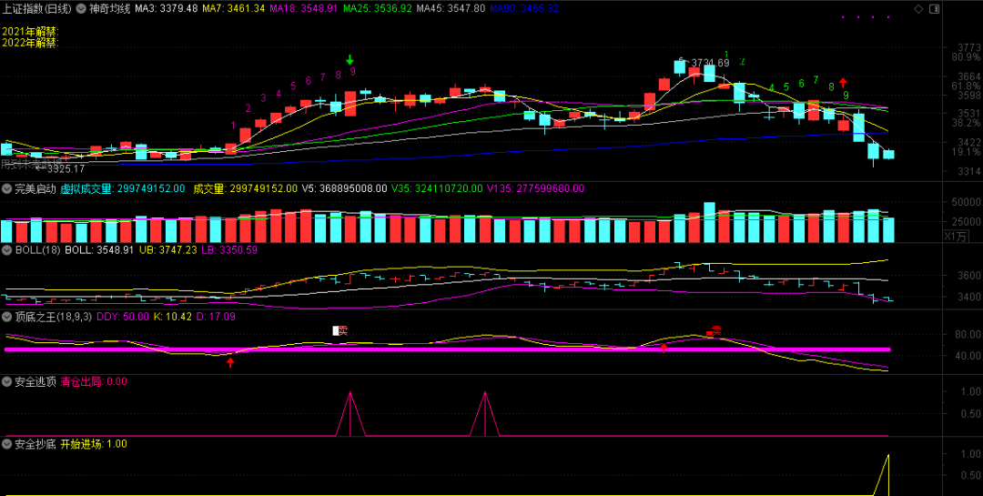 隔夜外围都还不错, A股前市直接高开在3389.84,这个高开让我心凉了半截儿,因为就这个15天左右的下跌,这样的高开已经好多次。结果正如我所料,指数最终的表现并不是太好。但可喜可贺的是,大盘日线安全抄底信号出来了,这个信号很重要,特别是在当前人心不稳的大环境下。但为什么很重要呢?