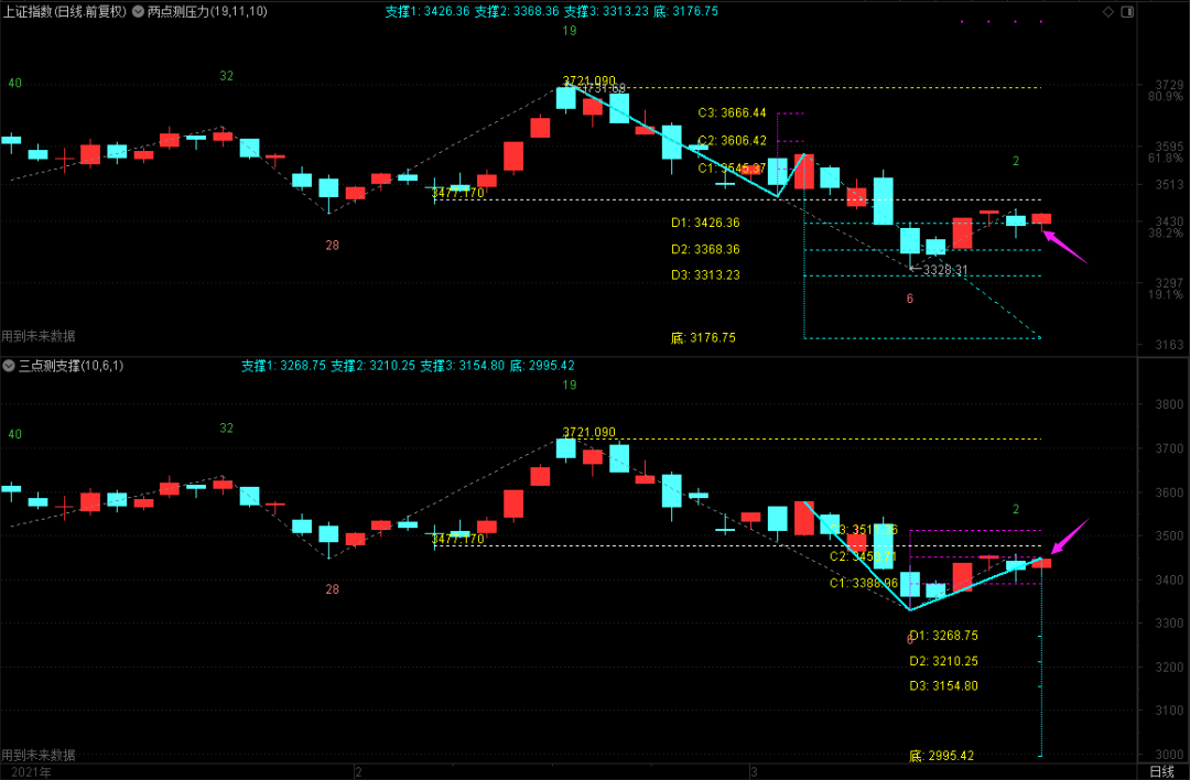大盘今天虽然出现了一定程度的上涨,但盘中仍然是一个震荡的格局。最终指数也没有收上3450.71,让当前之迷局依旧待解。这里面有一个原则,大家可以记牢,就是日线级别有安全抄底信号,只要没有大的特别的利空打击,指数就没有太大的问题。3511.36不突破站稳的话,市场就不会产生质的变化,现在震荡是必须的,如果拉的太急的话,势必会遭到空头的痛击!明天还要注意今隔夜外围股市的变化,如果出现大涨的话,就要谨防A股再走一步到位的高开,这种情况近期已经发生多次,不得不小心一些。如果隔夜外围股市大跌,对于A股来说反而可能会是好事,除了给场外枕戈待旦资金机会外,对后期行情的发展也是极为有利的。所以,现在完全可以轻指数重个股,有必要说一下,碳中和概念板块停止关注,原因就不多讲了。